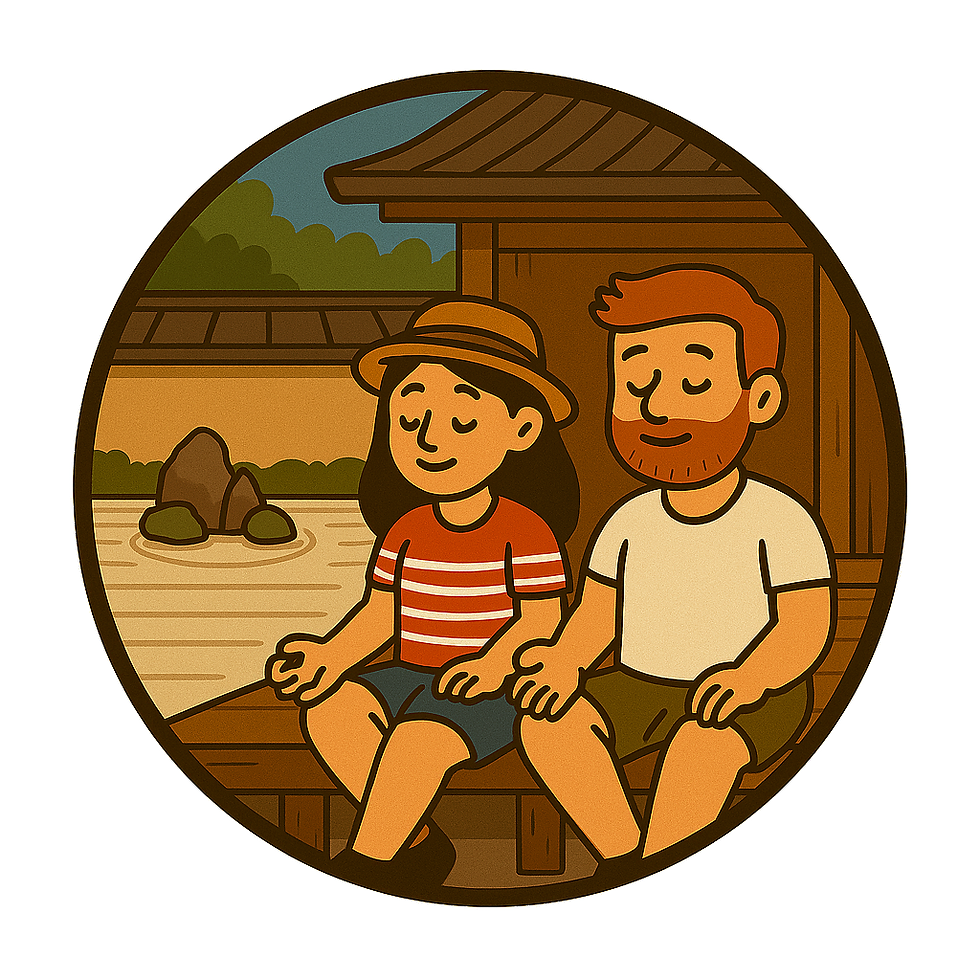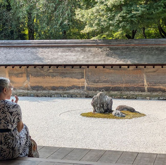 Il Ryoan-ji ci aspetta. Creato alla fine del XV secolo, è il più famoso giardino di rocce del Giappone, composto da 15 pietre disposte su ghiaia rastrellata. È studiato in modo che da qualsiasi punto di osservazione non si possano vedere tutte. Arriviamo a pochi minuti dall'apertura, senza un turista in vista. Ci sediamo davanti al giardino zen del tempio, immersi nei soli rumori del bosco. La ghiaia, pettinata in onde perfette, avvolge le pietre immobili che custodiscono storie antiche. Non lo avrei mai detto, ma invita davvero alla meditazione. Per dieci minuti restiamo lì, fermi, lasciando che ogni veduta ci riveli un nuovo dettaglio, come se il giardino sussurrasse segreti a chi ha la pazienza di ascoltare. Un'esperienza davvero unica.